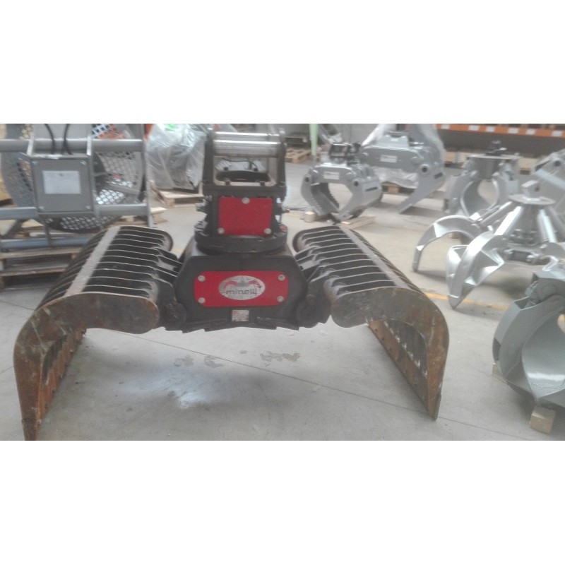 Nous mettons à l’honneur cette occasion, une pince de tri/démolition occasion 2016 modèle MBD500 de marque MINELLI avec couronne de rotation hydraulique PARKER.