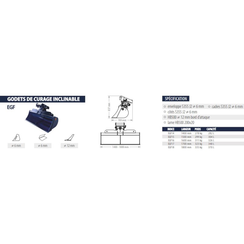 Les godets de la série EGC sont disponible en largeur 1000 - 1200 - 1400 - 1500 et 1600mm de largeur.