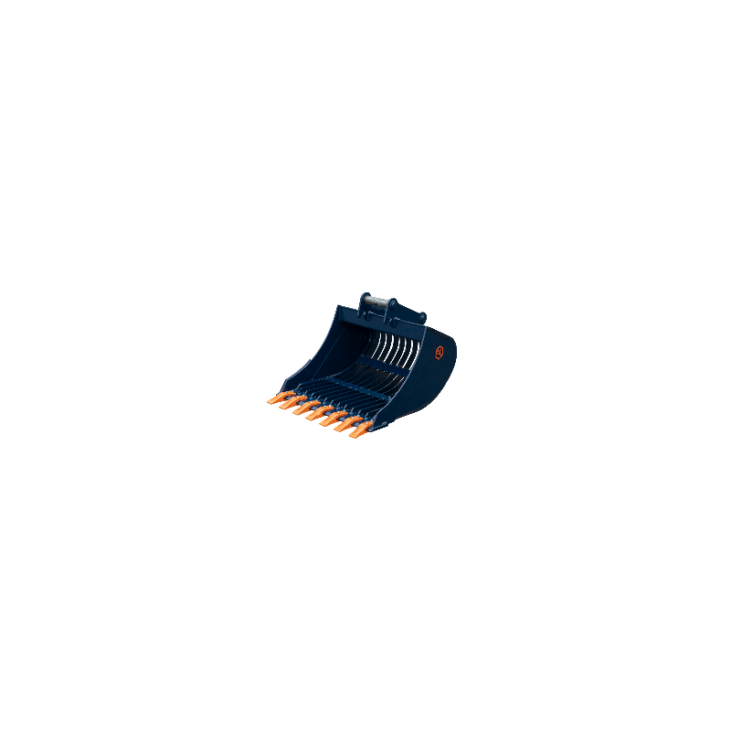 Godet squelette ou godet claire voie avec profil allongée pour une meilleure capacité de chargement.