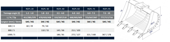 Godet de terrassement série GPL OEM GENERAL TP