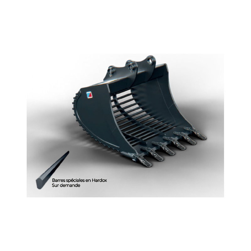 Le godet squelette robuste SDB DB améliore la séparation des matériaux. Ses nervures imbriquées permettent de trier et de tamiser efficacement divers matériaux.