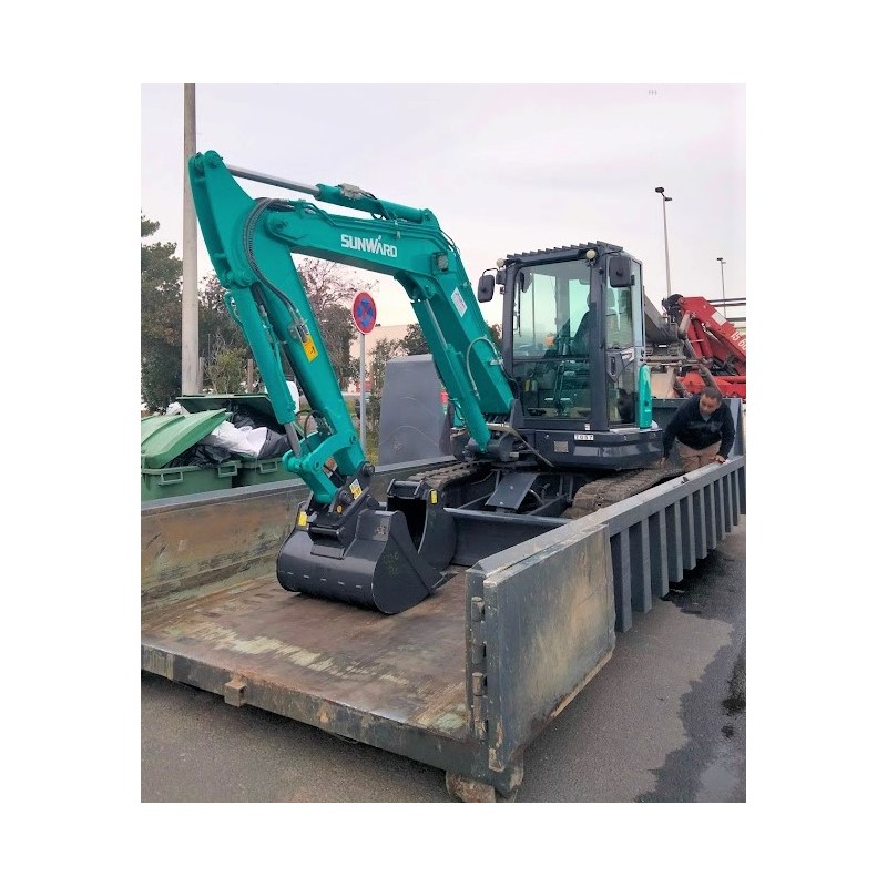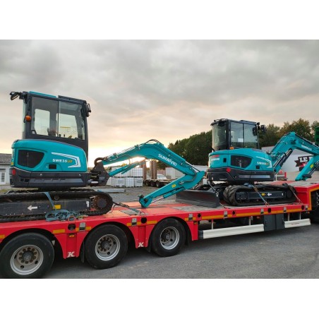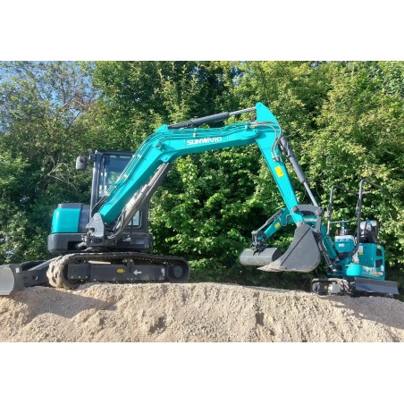 La Sunward SWE 60UF est une pelle compacte sans déport arrière, conçue pour offrir la puissance d’une machine supérieure tout en travaillant facilement dans les espaces restreints. Équipée du moteur Kubota V2607-DI-T-E121 Stage V – 35,6 kW, elle garantit robustesse, sobriété et faible impact environnemental.