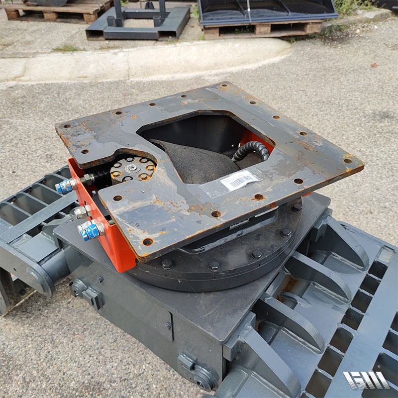 Elle comporte une couronne de rotation hydraulique avec un moteur PARKER.