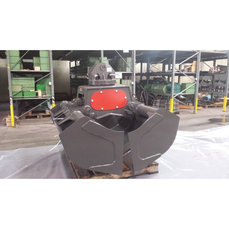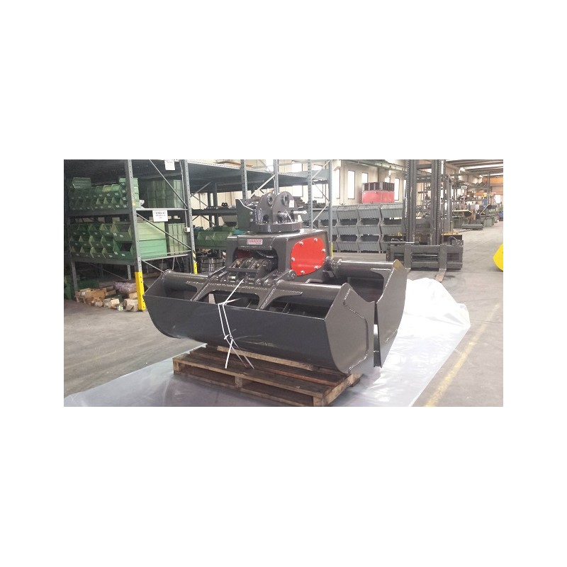 La benne est compatible avec des couronnes de rotation pendulaire type OR1-S capacité 20T (moteur et joint tournant PARKER)