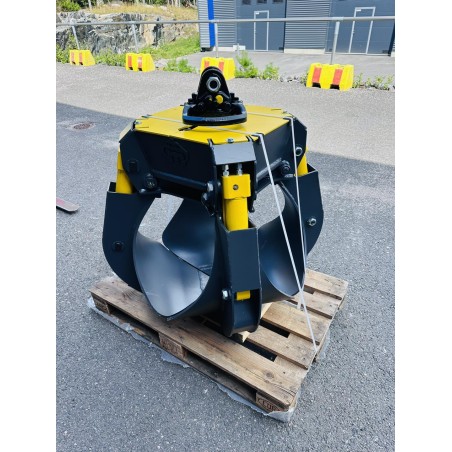 Promotion exclusive en cours sur les derniers modèles en stock de grappin à ferraille MPOS 350-4 P équipé de série d’un rotateur indexator GV6 encastré dans le bâti.